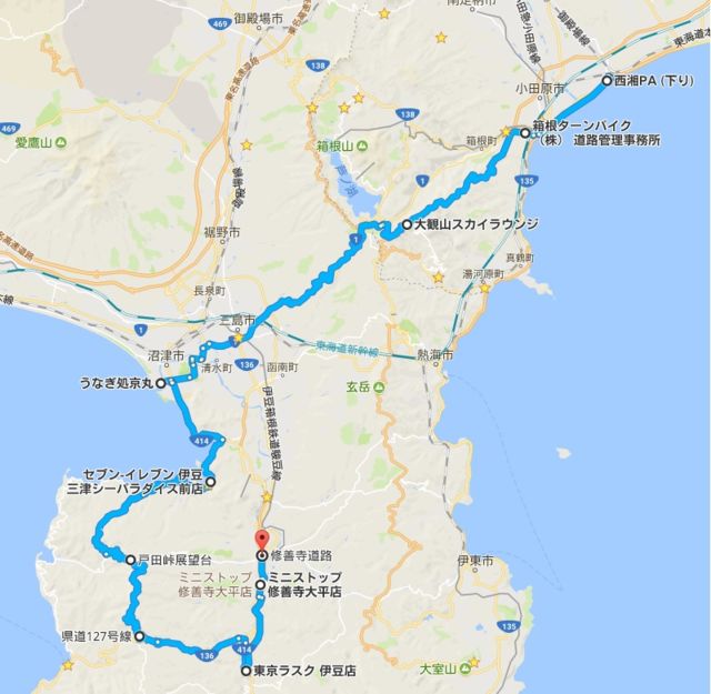 皆様、お久しぶりです&はじめまして。 cb(izumi)と申します。 とほほ呑み会にてツーリングを久しぶりに企画しようとの 運びとなりまして計画させていただきます。 よろしくお願いいたします。 内容はこちら↓ ルート(グーグルマップ) https://goo.gl/maps/ZunF1uh9Vio おひるのうなぎ(1000円〜) http://unagidokoro.com/news/2017/04/post-103.html (集合)西湘を9時に出発してターンパイク・箱根経由で沼津へ向かいます。 (お昼)お昼は沼津の京丸さんでランチ。 お得においしいうなぎが食べられるお勧めのお店で