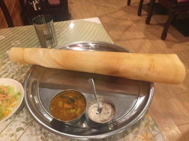 名古屋では馴染みの無い南インド料理に挑戦してみたいと思います。3500円で名古屋ではレアなマサラドーサとビリヤニが付いてのみ放題も付きます。 https://www.google.co.jp/amp/s/s.tabelog.com/aichi/A2301/A230101/23060430/top_amp/ 一応ドーサの写真載せます。マッシュポテトが発酵して酸味のある生地でクレープ状に巻いてあります。
