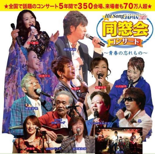〜昭和歌謡 復活祭〜同窓会コンサート2017 会場 釧路市民文化会館 時間 昼の部13:30開演 夜の部17:30開演 料金 SS席7,500 S席6,500円 A席4,500円(全席指定) 出演 タケカワユキヒデ・西城秀樹・尾藤イサオ・あおい輝彦・大野真澄・今陽子・あべ静江・辺見マリ・伊藤咲子・西口久美子・リリーズ http://www.oldies-station.com/news/5519/ お問合せ 「同窓会コンサート運営事務局」 三貴エージェンシー内 (TEL: 03-5430-8431 平日10:00〜19:00)