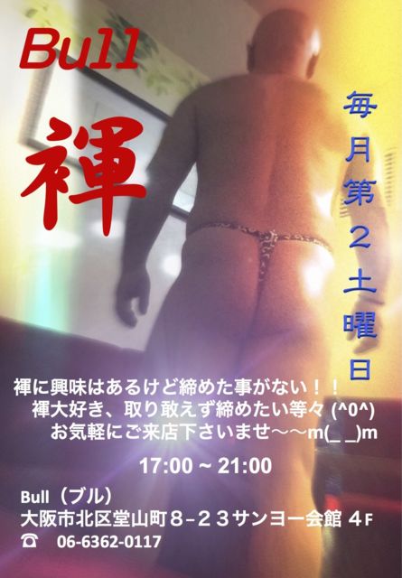 Bull 10月営業予定です。 10月2・3日(月・火) 19時〜21時まで平日お得な早割してます。 ショットコース: ショット3杯+お通し ボトルキープコース: 割り物無料+お通し+キープ¥1,000円引き 各コース¥2,000 10月4日(水) 中秋の名月 飲み放題します。 日本酒・焼酎・泡盛・ソフトドリンク飲み放題 お代金:2,000円 食べ物持ち込み自由です〜 10月10・11日(火・水) 19時〜21時まで平日お得な早割してます。 10月14日(土)第2土曜日恒例の褌デー 17時か