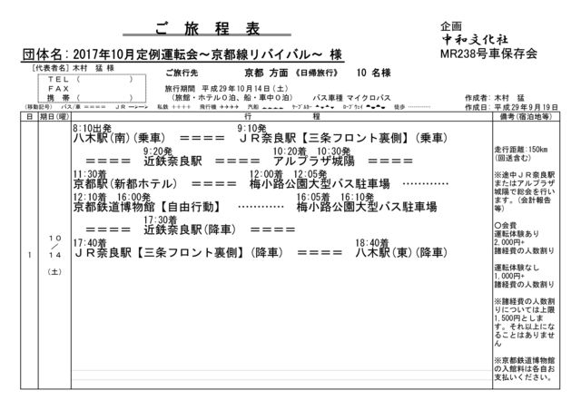 2017年10月14日 (八木駅8:10発・JR奈良駅9:10発)