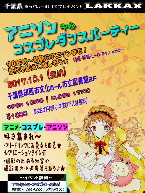 ¡Ø¥¢¥Ë¥á¡Ù¡Ø¥³¥¹¥×¥ì¡Ù¡Ø¥¢¥Ë¥½¥ó¡Ù¹¥¤½¸¤Þ¤ì¡Á( ¡ ¢¦ ` )ŽÉ ¥¢¥Ë¥½¥ó¤ÇÍ·¤Ü¤¦¡¢ÍÙ¤í¤¦¡¢³Ú¤·¤â¤¦¡ª µ×¡¹¤ËÀéÍÕ¸©°õÀ¾»Ô¤Ç¤Î³«ºÅ¤À¤è¡ú ¡Ø¤¢¤Ã¤È¤Û¡¼¤à¥³¥¹¥×¥ì¥¤¥Ù¥ó¥È¡Ù LAKKAX¡Ê¥é¥«¥Ã¥¯¥¹¡Ë ¥¢¥Ë¥½¥óÃæ¿´¤Î¥³¥¹¥×¥ì¥À¥ó¥¹¥Ñ¡¼¥Æ¥£¡¼¤Ë¥ì¥¯¥ê¥¨¡¼¥·¥ç¥ó¥¿¥¤¥à¤â ¥¢¥Ë¥½¥ó¤ä±ÇÁü¡¢Ê·°Ïµ¤¤ò³Ú¤·¤ó¤À¤ê¸òή¤·¤¿¤ê(^o^)/ ÀŤ«¤ËÏ令륹¥Ú¡¼¥¹¤ä¡¢»£±Æ½ÐÍè¤ë¥¹¥Ú¡¼¥¹¤Èʬ¤«¤ì¤Æ¤¤¤ë¤Î¤Ç¡¢¤ª²Û»Ò¤ò¿©¤Ù¤Ê¤¬¤é¸òή¤·¤¿¤ê¡¢¥³¥¹¥×¥ì»£±Æ¤·¤¿¤ê¤È¡¢¤Þ¤Ã¤¿¤êµ¤·Ú¤Ë³Ú¤·¤á¤ë¥¤¥Ù¥ó¥È¤Ç¤¹¡ú ¥¹¥¿¥Ã¥Õ¤â»²²Ã¼Ô¤â¥Õ¥ì¥ó¥É¥ê¡¼¤Ç³Ú¤·¤¤¿Í
