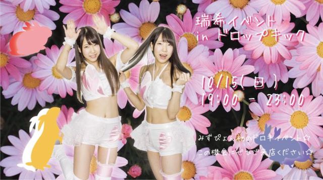 15日(日)瑞希イベント!! 東京女子に参戦している瑞希選手のドロキ初イベント! 東京女子イベントと同じく、2時間飲み放題3,000円で、瑞希選手特製のフードもございます! また、スタッフには山下選手も! 19時から23時! 皆様お待ちしております! ※9/28付け公式Twitterより