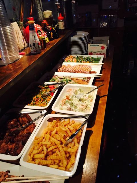 10/15()日)夕方5時から食べ放題(お客様がいる限りバイキングは絶えず補充しますので、途中で無くなる事はありません。)の恒例江古田の『ディスコ伝説』開催です。今月も誕生会有ります。また10月という事で、現在都内でも屈指の保存状態の良さを誇る淑女様達の仮装もご覧になれるかと思います。まだ未体験のお友達奮ってご来場くださいませませ(男女共に2,500円。1ドリンク・フリー・フードです。7時までにいらっしゃっていただければ500円OFFです)今年も残すところあと3ヶ月。今月も一緒に遊んでくださいね。写真は先月の店内の様子です。
