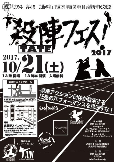 ¡Ø»¦¿Ø¡ÁTATE¡Á¥Õ¥§¥¹2017¡Ù ¡Ú¾ì½ê¡Û Éð¢Ì¥¤¥ó¥°¥Û¡¼¥ë £Ê£ÒÃæ±ûÀþ¡¦É𢶱ØË̸ý²¼¼Ö¡¡À¾¤ØÅÌÊâ2ʬ ÅìµþÅÔÉð¢Ìî»Ô¶2ÃúÌÜ14ÈÖ1¹æ TEL 0422-54-1313 http://www.musashino-culture.or.jp/sisetu/swing/swing.html ¡ÚÆü»þ¡¦ÎÁ¶â¡Û £²£°£±£·Ç¯£±£°·î£²£±Æü¡¡£±£³»þ£³£°Ê¬³«±é ¢¨£±£³»þ³«¾ì Æþ¾ì̵ÎÁ ¡Ú»²²ÃÃÄÂÎ¡Û ·àÃÄEASTONES¡¡http://www.eastones.jp/ Team Greif 10¡¦Quatre¡¡¥Æ¥ó¥«¥È¥ë¡¡http://10quatre.com/ Ñû´ìÆ» from Ñû´ì½°¤«¤à¤ð¡¡http://samurai-kamui.com/ TFAĹ·ýÂâ¡¡http://cgi3.t-f-a.org/wordpress/?pag