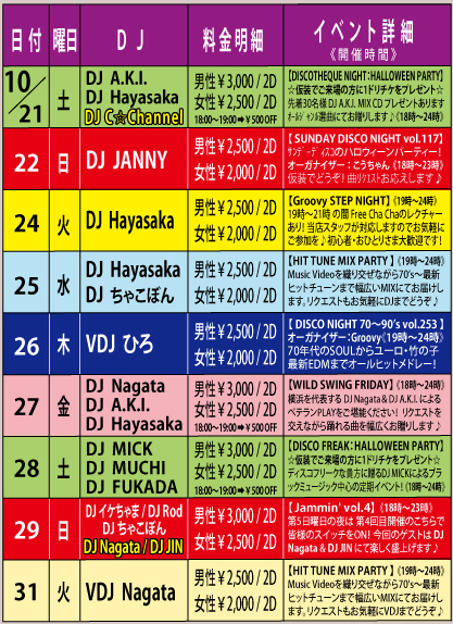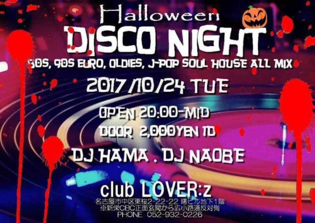 Halloween DISCO NIGHT Last Summer DISCO NIGHT¤Ë³¤¯Âè£²ÃÆ¡ª ¥Ï¥í¥¦¥£¥ó¥¹¥Ú¥·¥ã¥ë 80's¡¢90'sEURO¡¢OLDIES,J-POP¡¢SOUL¡¢HOUSE¡¢£å£ô£ã¡Ä 80ǯÂå¤ÎDISCO SOUND¤«¤éJ-POP¤Þ¤ÇÉý¹¤¯ALL-MIX¤Ç ¤ªÆÏ¤±¤¹¤ë½©º×¤ê´ë²è¡ª ½©¤ÎÌëŤò¡¢¥³¥¹¥×¥ì¤Î¿Í¤â¡ª¡¢¤½¤¦¤Ç¤Ê¤¤¿Í¤â¡ª ¥Ï¥í¥¦¥£¥ó¥à¡¼¥É¤ÇÀ¹¤ê¾å¤¬¤ê¤Þ¤·¤ç¤¦¡ª¡ª Æüº¢½ÐÍè¤Ê¤¤²¾Áõ¤ò¤³¤Îµ¡²ñ¤ËÀ§Èó¡ª(#^.^#) Á´¿È¥³¥¹¥Á¥å¡¼¥à¤Ç¥×¥é¥¹£±Drink¥µ¡¼¥Ó¥¹¡ª¡ª¡ª ¢£DJ's HAMA NAOBE ¢£DATE¡¡10/24¡ÊTUE) ¢£OPEN¡¡20¡§00¡ÁMID ¢£DOOR ¡ï2,000(1D) ¾ì½ê¡§ CLUB LOVER:£ú ½»½ê¡§ ̾¸Å²°»ÔÃæ¶èÅìºù2-