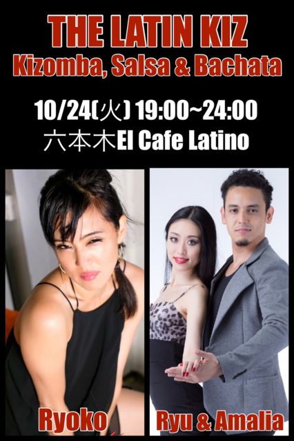 ¡úTHE LATIN KIZ¡ú SALSA¥¤¥ó¥¹¥È¥é¥¯¥¿¡¼Ryoko¤ÈKIZOMBA & BACHATA¥Ú¥¢Ryu & Amalia¤Î¥³¥é¥Ü¥¤¥Ù¥ó¥È!! KIZOMBA, SALSA & BACHATA¤ò2¥Õ¥í¥¢¤Ç³Ú¤·¤á¤ë¥ì¥Ã¥¹¥óÉÕ¤¤Î¥½¡¼¥·¥ã¥ë¥Ñ¡¼¥Æ¥£¡¼¤Ç¤¹¡£ ²ñ¾ì¤ÏÏ»ËÜÌڤο͵¤¥¹¥Ý¥Ã¥È¡ÖEL CAFE LATINO¡×¤Ç¤¹¡£ º£²ó¤ÏRyoko¤ÈRyu¤Î¥Ð¥Á¥ã¡¼¥¿¥Ç¥â¥¹¥È¥ì¡¼¥·¥ç¥óÍÙ¤ê¤Þ¤¹¡£ ¢¡Æü»þ¡§10·î24Æü¡Ê²Ð¡Ë19:00-24:00 ¢¡¾ì½ê¡§Ï»ËÜÌÚ¡ØEL CAFE LATINO¡Ù ÅìµþÅÔ¹Á¶èÏ»ËÜÌÚ3-15-24 WINÏ»ËÜÌÚ1F & 2F TEL 03-3402-8989 http://www.elcafelatino.com/ ¢¡ÎÁ¶â Party: 1500w1d (¥¢¥Õ¥¿¡¼