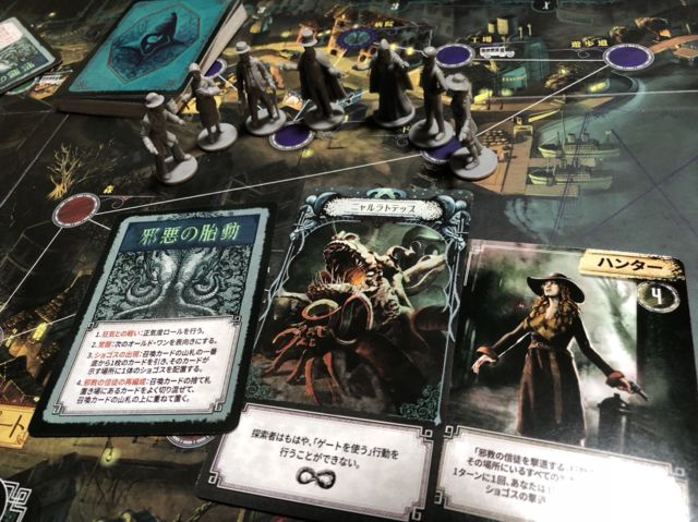 今回メインとなるゲームはこれ!! 『パンデミック:クトゥルフの呼び声』 「あなたは禁断の知識に触れ、眠れる大衆には耐えられないような事実を知ってしまった。オールド・ワン、旧支配者とも呼ばれる邪神たちが存在することを・・・探索が進むにつれ、あなたはより深い混沌と狂気に踏み込んでいくであろう。」 クトゥルフ神話に基づくダークホラーな世界観を持つ協力型ボードゲームです。 各プレイヤーは旧支配者封印のため活動しますが、キャラクターの『正気度(SAN値)』が設定されており、これがなくなると、『発狂状態』となり、キャラ
