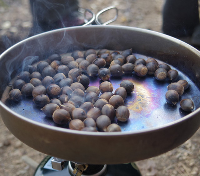 高槻にある若山(315m)に登ります。 山自体はかなりお手軽で、ダイナミックな自然はまったくありませんが、野性の木の実を楽しめます。 登山口にある神社周辺から上の方に椎(シイ)の純林が広がっています。 そこで椎の実を拾いながら登って、昼食後に炒って食べます。 もちろん食べたくない人は食べなくていいですが(^^; 野性味はまったくなく、香ばしくて、栗のような甘味もあって美味しいので、オススメです。 シイの実の他にも、フユイチゴというキイチゴの仲間もあります。 時間は余裕があるので昼食休憩はゆっくりできます。 コース中