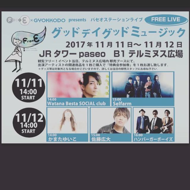 ¡ÚFrom E¡Ä¡Ê¥Õ¥í¥à¥¤¡¼¡Ë¡ß¶Ì¸÷Ʋ ¥°¥Ã¥É¥Ç¥¤ ¥°¥Ã¥É¥ß¥å¡¼¥¸¥Ã¥¯¡Û 9·î¤Ë³«ºÅ¤·¤¿ From E¡Ä¶Ì¸÷Ʋ ¥°¥Ã¥É¥Ç¥¤ ¥°¥Ã¥É¥ß¥å¡¼¥¸¥Ã¥¯¡£ ¹¥É¾¤Ë¤Ä¤Âè2ÃÆ¤¬·èÄꡪ¡ª º£²ó¤Ï2DAYS¤Ç¤Î¥¤¥Ù¥ó¥È³«ºÅ¤È¤Ê¤ê¤Þ¤¹¡ª¡ª From E¡Ä¤È¶Ì¸÷Ʋ¤¬¥ª¥¹¥¹¥á¤·¤Æ¤¤¤ë¥¢¡¼¥Æ¥£¥¹¥È·×5ÁȤ¬¥Ñ¥»¥ª ¥Æ¥ë¥ß¥Ì¥¹¹¾ì¤Ë½¸¤¦¤³¤Î¥¤¥Ù¥ó¥È¡£ ¤³¤Îµ¡²ñ¤ËÀ§Èó¤ò¤ª±¿¤Ó²¼¤µ¤¤¡£ ¡ÖFrom E¡Ä¡ß¶Ì¸÷Ʋ ¥°¥Ã¥É¥Ç¥¤ ¥°¥Ã¥É¥ß¥å¡¼¥¸¥Ã¥¯¡× ¢£Æü»þ¡§2017ǯ11·î11Æü¡ÊÅÚ¡Ë 14¡§00 START ¡Ô11·î11Æü¡Õ 14:00¡Á Watana Besta SOCIAL club 15:00¡Á Selfarm ¢£²ñ¾ì¡§¥Ñ¥»¥ª