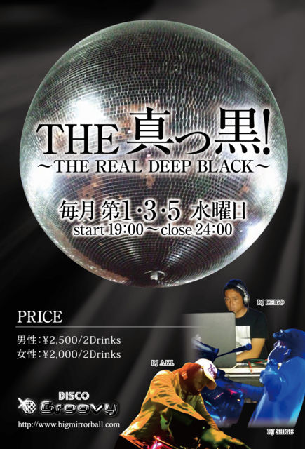 ¡Ú¥Ö¥é¥Ã¥¯¥ß¥å¡¼¥¸¥Ã¥¯¹¥¤¤ÊÊý¤ªÂÔ¤Á¤«¤Í¡ª¡Û 11·î¤ÎÂè1¡õÂè3¿åÍË¡õÂè5¿åÍˤϡª ¹õ¤¤²»¤Î¤ß¤Ç¥Õ¥í¥¢¤òÀ¹¤ê¾å¤²Â³¤±¤ë¡ÚTHE ¿¿¤Ã¹õ¡Û¾Æü¤ÎDISCO Groovy¤Ç¤Ï¤Ê¤«¤Ê¤«Ä°¤¯¤³¤È¤Î¤Ç¤¤Ê¤¤¥ì¥¢¤ÊFUNK¡õSOUL MUSIC¤òÀ§Èó¤´´®Ç½¤¯¤À¤µ¤¤¢ö ¡ÚDJ's¡Û A.K.I. / SHIGE / KEIGO ¡Ú²»³Ú¡Û BLACK ALL MIX ¡Ú³«ºÅ»þ´Ö¡Û 19:00¡Á24:00 ¡ÚÎÁ¶â¡Û ÃËÀ¡§¡ï2,500 / 2Drinks ½÷À¡§¡ï2,000 / 2Drinks