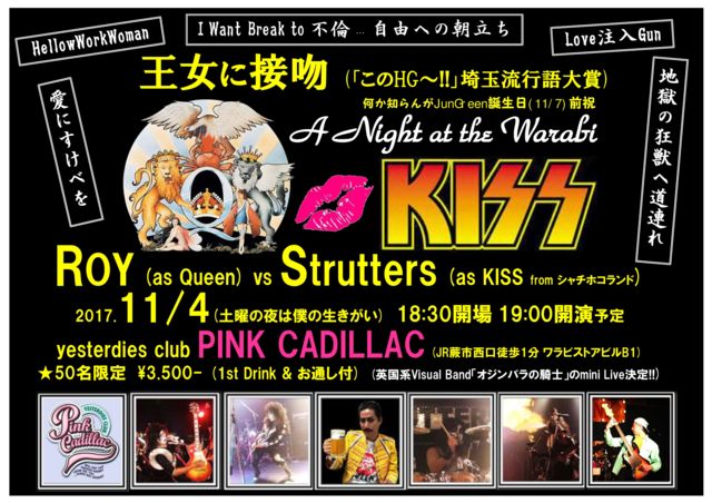 2017.11/4(土曜の夜は僕の生きがい) 18:30開場 19:00開演予定
