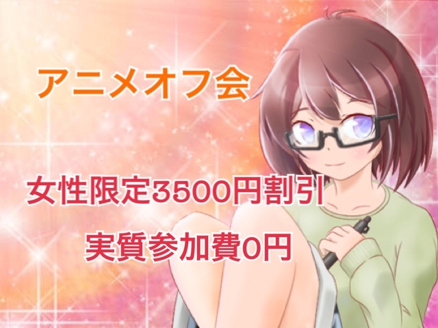 ■アニメオフ会■ おしゃれな会場で、アニメ好きの集まる飲み会メインの交流会イベントです(一つでも何か好きなアニメ作品がありましたオッケーです) 趣味が近い方が集まるので盛り上がること間違いなし 今回のオフ会は、30名様定員でツイッターなどでも募集してるため人数限りがありますので少しでも気になりましたらお早目に参加表明のほうよろしくお願いします!! 当イベントはお一人様参加が8割、お友達と参加が2割なのでお一人様参加でもお友達と参加でも大歓迎です 楽しめるオフ会にしますので皆様の参加お待ちし