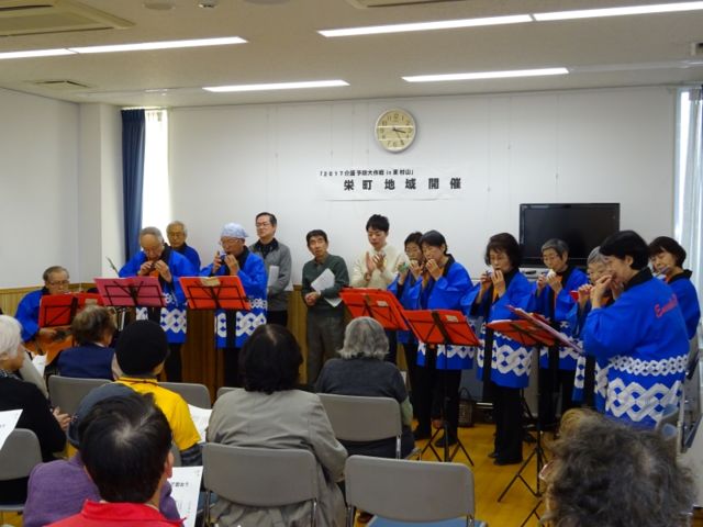 演奏曲目 1 村祭り 2 紅葉 3 里の秋 4 星影のワルツ 5 北上夜曲(男性コーラス) 6 東村山四季の詩 7 バラが咲いた 8 故郷 ※演奏時間 3:20〜4:00(集合3:00だが、1:00から参加も可)