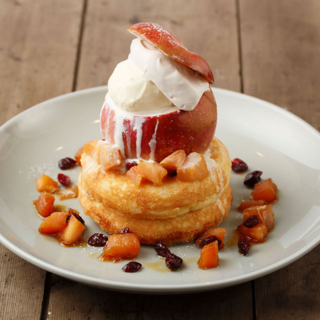 管理人様、貴重なスペースをありがとうございます。 11/19(日) 11:00〜 有楽町:期間限定のまるごとリンゴのパンケーキをはじめモチモチのパンケーキがおすすめの 「ビブリオテーク」でカフェ会します。 ここのパンケーキは厚みがあり、弾力のある生地が特徴です。 特に11月限定の「まるごとリンゴのパンケーキ ホットカスタードソース 」は、 有楽町店にて5周年記念で提供していたもので、 大好評だったため、マンスリーパンケーキとして復活しました。 ビブリオテークオリジナルのもっちりふわふわのパンケーキの上に、焼きリ