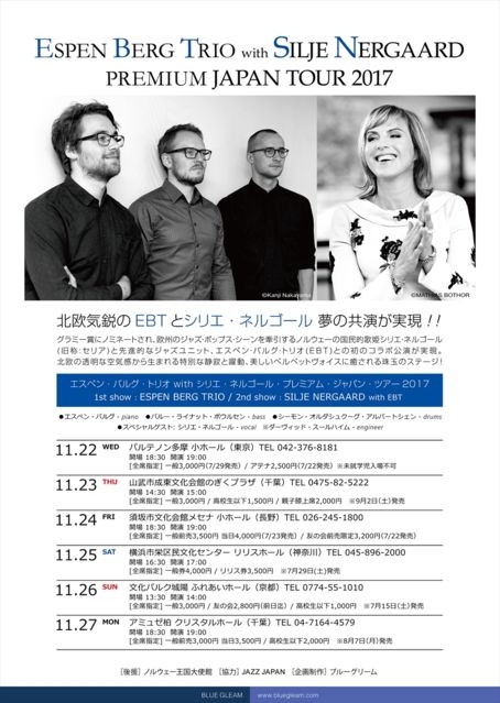 ¢£¥¨¥¹¥Ú¥ó¡¦¥Ð¥ë¥°¡¦¥È¥ê¥ª(EBT) with ¥·¥ê¥¨¡¦¥Í¥ë¥´¡¼¥ë¡¦¥×¥ì¥ß¥¢¥à ¥¸¥ã¥Ñ¥ó¥Ä¥¢¡¼ 2017¢£ ¡Á Ë̲¤µ¤±Ô¤ÎEBT¤È¥·¥ê¥¨¡¦¥Í¥ë¥´¡¼¥ë Ì´¤Î¶¦±é¤¬¼Â¸½!! ¡Á ¥°¥é¥ß¡¼¾Þ¤Ë¥Î¥ß¥Í¡¼¥È¤µ¤ì¡¢²¤½£¤Î¥¸¥ã¥º¡¦¥Ý¥Ã¥×¥¹¡¦¥·¡¼¥ó¤ò¸£ °ú¤¹¤ë¥Î¥ë¥¦¥§¡¼¤Î¹ṉ̃Ū²Îɱ¥·¥ê¥¨¡¦¥Í¥ë¥´¡¼¥ë(µì¾Î:¥»¥ê¥¢)¤ÈÀè ¿ÊŪ¤Ê¥¸¥ã¥º¥æ¥Ë¥Ã¥È¡¢¥¨¥¹¥Ú¥ó¡¦¥Ð¥ë¥°¡¦¥È¥ê¥ª(EBT)¤È¤Î½é¤Î¥³¥é ¥Ü¸ø±é¤¬¼Â¸½¡ªË̲¤¤ÎÆ©ÌÀ¤Ê¶õµ¤´¶¤«¤éÀ¸¤Þ¤ì¤ëÆÃÊ̤ÊÀżä¤ÈÌöư¡¢ Èþ¤·¤¤¥Ù¥ë¥Ù¥Ã¥È¥ô¥©¥¤¥¹¤ËÌþ¤µ¤ì¤ë¼î¶Ì¤Î¥¹¥Æ¡¼¥¸¡ª ¥Á¥±¥Ã¥È¹¥É¾È¯ÇäÃæ¡ª ¢£11·î22Æü(¿å) ¥Ñ¥ë¥Æ¥Î¥ó¿