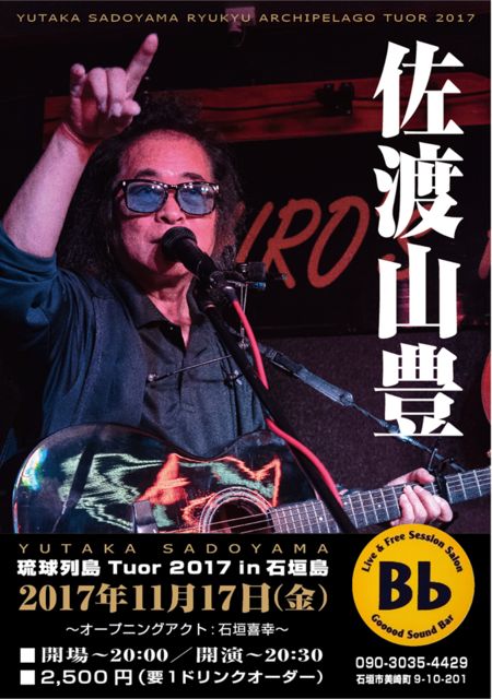 11月16日(木) 竹富島 民藝喫茶マキ http://www.mingeimaki.com/ 開場19:00/開園20:00 料金2500円(要ドリンクオーダー) 11月17日(金) 石垣島 BarBb https://m.facebook.com/bar.ishigakiBb/?locale2=ja_JP 開場20:00/開園20:30 料金2500円(要ドリンクオーダー) 11月19日(日) 宮古島 雅歌小屋(ガカゴヤ) https://m.facebook.com/gakagoya 開場20:00/開園20:30 料金3500円(1ドリンク付) 11月22日(水) 奄美大島 MAYASCO https://m.facebook.com/mayasco.amami/?locale2=ja_JP OA:パオ・盛島貴男(奄美竪琴 )https://m.youtube.com/