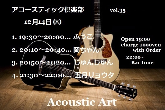 12·î14Æü(ÌÚ) ¥¢¥³¡¼¥¹¥Æ¥£¥Ã¥¯¶æ³ÚÉô vol.35 Ëè·îÂè2ÌÚÍËÆü³«ºÅ ¥Á¥ã¡¼¥¸1000±ß+1¥É¥ê¥ó¥¯ (·Ú¿©¡¦¤ª¤Ä¤Þ¤ß»ý¤Á¹þ¤ßOK) Open 19:00¡Á 1. 19:30¡Á20:00¡Ä¤Õ¤¦¤³ 2. 20:10¡Á20:40¡Ä²¬¤Á¤ã¤ó 3. 20:50¡Á21:20¡Ä¤¸¤å¤ó¤¸¤å¤ó 4. 21:30¡Á22:00¡Ä¸Þ·î¥ê¥ç¥¦¥¿ °Ê¹ß Bar time ¤Õ¤¦¤³&¤¸¤å¤ó¤¸¤å¤ó ¡¡¤¬¡¡¤½¤í¤¦¤Î¤Ï ¡¡¡¡¡¡ÌÀÆü¡¡¤À¤±¤Ç¤¹¢ö ¥³¥á¥ó¥È