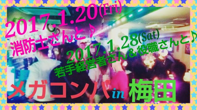 【消防士さんとメガコンパ★part2】 満員御礼イベントの第2弾です!! 前回は、消防士さん65名、女性65名!! 総勢130名様にご参加頂き、ありがとうございました!! 定員オーバーで参加出来なかった皆様&ご参加頂いた皆様からのアンコール!!につき、part2を開催いたします★ ★2017年1月20日(金) ★19時〜(途中参加、途中退場自由♪) ★梅田 ★飲み放題&コース(約6品)のブュッフェ ☆消防士さん 4900円 ☆女性(20〜39歳) 4100円 【とも★つく公式LINEアカウント】お友達登録頂いている皆様♪ ☆消防士さん 4400円 ☆女性 3600円