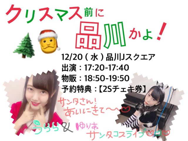 ¡Ö¥¯¥ê¥¹¥Þ¥¹Á°¤ËÉÊÀ¤è¡ª¡× Æü»þ¡§12/20(¿å) ³«¾ì16:30¡¿³«±é17:00 ²ñ¾ì¡§ÉÊÀîJ¥¹¥¯¥¨¥¢ ÎÁ¶â¡§Á°Çä2,000±ß / ÅöÆü2,500±ß¡Ê1DÊÌ500±ß) ½Ð±é¡§i*chip_memory / ÀÖ¤Á¤ç¤³ / ÀûΧ¥Õ¥ê¡¼¥¸¥¢ / #¥É¥ë¡¼¥Á¥å / ¤Ï¤Ã¤Ô¤Ã¤Ô / PUPUPU81 / BABY TO KISS / ¤Ë¤¸¤¤¤í³Ø±àSEASON3 / littlemore./¡Ä