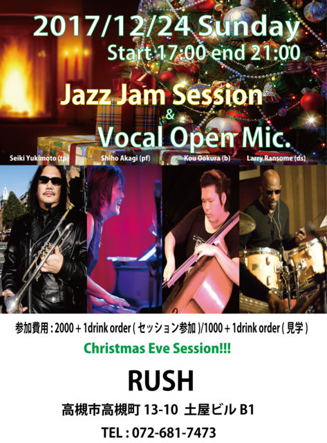 Âè»ÍÆüÍËÆü¡¢¹±Îã¤ÎJK RUSH¥¸¥ã¥à¥»¥Ã¥·¥ç¥ó¡ª¡ª º£²ó¤Ï¥¯¥ê¥¹¥Þ¥¹¡¦¥¤¥ô¤Ê¤Î¤Ç ¥»¥Ã¥·¥ç¥ó»²²Ã¼Ô¤Î¤ß¤Ç¤¹¤¬ ÀèÃå¤Ç¤Ï¤¢¤ê¤Þ¤¹¤¬¡¢ ¤Ê¤¯¤Ê¤ê¼¡Â轪λ¤Ç¤¹¤¬¡¦¡¦¡¦ ¥¹¥Ñ¡¼¥¯¥ê¥ó¥°¡¦¥ï¥¤¥ó¤ò1ÇÕ¤Õ¤ë¤Þ¤¤¤¿¤¤¤È»×¤¤¤Þ¤¹ 5»þ¤«¤éÍè¤è¤¦¡ª¡ª 2017ǯ12·î24Æü¡ÊÆü¡Ë 17:00 ~ 21:00 At RUSH¡Ê¹âÄÐ¡Ë ¹âÄлԹâÄÐÄ®13-10 ÅÚ²°ÂèÆó¥Ó¥ëB1 TEL : 072-681-7473 http://www.jks-group.info/store/ **JRÂçºå±Ø¡¢JRµþÅÔ¤«¤é¿·²÷®¤ÇÌó15ʬ¡¢ ±Ø¤«¤éÅÌÊâ4ʬ¤Ç¤¹¡£ **ºåµÞ¹âÄлԱء¢¤«¤éÅÌÊâ4ʬ¤Ç¤¹ ¡ÔHouse Band¡Õ Seiki Yukimoto