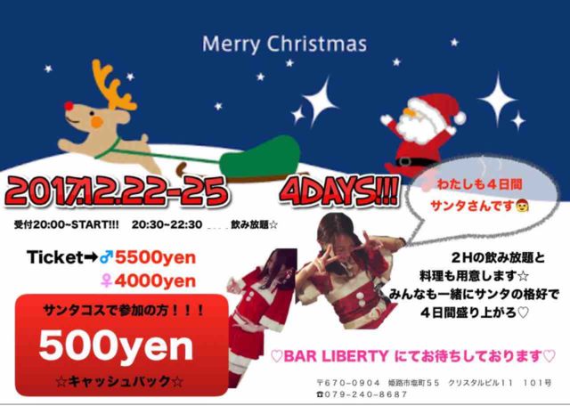 £±£²·î¤È¤¤¤¨¤Ð¡Ä ¥¯¥ê¥¹¥Þ¥¹🎅🎄⛄🎁❤ ¤½¤³¤Ç¥¯¥ê¥¹¥Þ¥¹¥¤¥Ù¥ó¥È¤ò³«ºÅ¤·¤Þ¤¹¡ú Žß+oŽ¡◈Ž¡o+Žß+oŽ¡◈Ž¡o+Žß+oŽ¡◈Ž¡o+Žß+oŽ¡◈Ž¡o+ 📍³«ºÅ¾ì½ê ↳BAR LIBERTY 🗓³«ºÅÆü»þ ↳12·î22Æü(¶â)¡Á25Æü(·î) 20:30¡Á22:30 (¼õÉÕ 20:00¡Á) 💰»²²ÃÈñ ↳🚹ÃËÀ¢ª¢ª¢ª5500±ß 🚺½÷À¢ª¢ª¢ª4000±ß 📝¾ÜºÙ ↳£²»þ´Ö°û¤ßÊüÂê¡ÜÎÁÍýÉÕ¤🍻