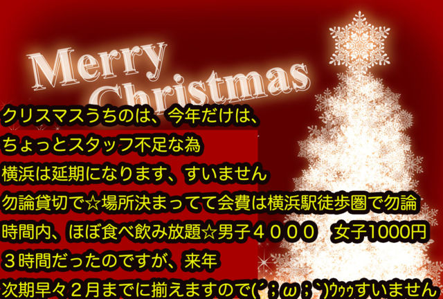 Ê¿Æü¤Î¤É¿¿¤óÃæ¤È¤Ê¤ê¤Þ¤¹¤¬¡¢²¼µ¤ÎÆüÄø¤Ç·Ú¤¯½¸¤Þ¤í¤¦¤È»×¤¤¤Þ¤¹¡£ ¡ÚÆü»þ¡Û2017ǯ12·î27Æü(¿å) 20:30¡Á24:00 (¢¨¼ã´³Á°¸å¤Î²ÄǽÀ¤¢¤ê) ¡Ú¾ì½ê¡Û¼óÅÔ¹â®ƻϩ Âç¹õ¥Ñ¡¼¥¥ó¥°¥¨¥ê¥¢ ¼«Í³»²²ÃŽ¥¼«Í³Âà»¶¤Î·Á¤Ç½¸¤Þ¤í¤¦¤È»×¤¤¤Þ¤¹¤Î¤Ç¡¢¤â¤·¤ª»þ´Ö¤Î¤¢¤ëÊý¤Ïµ¹¤·¤¯¤ª´ê¤¤Ãפ·¤Þ¤¹¡£ ºÙ¤«¤ÊÃí°Õ»ö¹à¤Ï²¼µ¤Î²áµî¥¤¥Ù¥ó¥È¥È¥Ô¥Ã¥¯¤ò»²¹Í´ê¤¤¤Þ¤¹¡£ http://mixi.jp/view_event.pl?id=60150238&comm_id=2605220 µ¤²¹¤¬Ä㤤¤Î¤Ç¡¢»þ¡¹Ç䏤ÇÃȤò¤È¤ëÅù¤·¤Æ¼«Í³¤Ë³Ú¤·¤ó¤Ç失¤ì¤Ð¤È»×¤¤¤Þ¤¹¡£ ÆâÍÆ¤¬¤Û¤ÜÁ°²ó¤Î°úÍѤǤ¹¤ß¤Þ¤»¤ó¤¬¡¢²¿Â´µ¹
