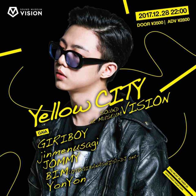 ゲスト取れますのでお気軽にメッセージください! 2017.12.28(木) Yellow CITY @SOUND MUSEUM VISION OPEN 22:00 〈アジアの若手アーティストに焦点を当て、これからのHIPHOPシーンを世界に発信していくことをモチーフにしたPARTY”Yellow CITY”今回は韓国の大人気ラッパーGIRIBOYが待望の初来日!!日本からはjinmenusagi、JOMMY、BIM(THE OTOGIBANASHI’S) が登場!!!〉 アジアの若手アーティストに焦点を当て、これからのHIPHOPシーンを世界に発信していくことをモチーフにしたこのPARTY、今回はJust Music所属、Show me the money3に出演し注目を