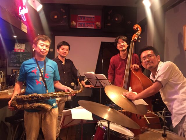 森近徹(ts)さん、田村和大(p)さん、佐久間高広(b)さん、田村陽介(ds)さんのカルテットです。 森近さんは、フュージョン色の強いオリジナル曲に定評があります。森近さんのアルバム「Another World」を聴いていると、どっぶり森近ワールドに浸ってしまいます。 ピアノの田村和大さんは、ロックにハマった10代、ブラックミュージックをたどって、ジャズにたどり着き、演奏活動を始めたそうです。ジャンルを超えたミュージシャンと共演を重ねています。 佐久間さんは、ファンキーなベーシスト。心に響くベースラインです。 ドラムの