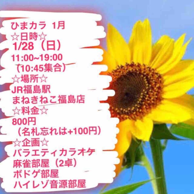 ひまカラ幹事のがっき→です、 関西大規模カラオケオフ会連合にイベント上げさせて頂きます。 以下転載 サークルひまわりカラオケオフ会 略してひまカラ♪ みんなでカラオケしつつ、おしゃべりしましょう(*^^*) とってもゆるーい雰囲気と気軽さがウリのカラオケオフ会です♪ ひまカラの特徴その1【バラエティカラオケ】 大部屋にて「引いたカードのお題に沿った選曲をする」という企画 「バラエティカラオケ」やっています! いつもとは一味違う選曲やここぞというチョイスに盛り上がること間違いなし! 人気企画ですのでぜひとも足をお運