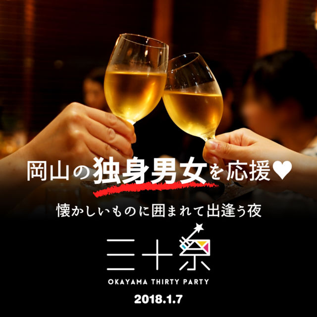 »°½½º×¤Ç¤Ï²¬»³¤ÎÆÈ¿ÈÃ˽÷¤Î³§¤µ¤Þ¤Î½Ð²ñ¤¤¤ò±é½Ð¤¹¤ë´ë²è¤ò½àÈ÷¤·¤Æ¤ª¤ê¤Þ¤¹¡£º£Ç¯¤Á¤ç¤¦¤É»°½½ºÐ¤Ç¤Ê¤¯¤Æ¤â¡¢²¬»³¤Î¿·»°½½ºÐ¤ò½Ë¤Ã¤Æ¤¯¤À¤µ¤ëÆó½½ºÐ°Ê¾å¤ÎÊý¤Ç¤¢¤ì¤Ð¤É¤Ê¤¿¤Ç¤â¤´»²²Ã¤¤¤¿¤À¤±¤Þ¤¹¤Î¤Ç¤¼¤Ò¸æÍ¶¤¤¹ç¤ï¤»¤Î¾å¡¢¤´Íè¾ì¤¯¤À¤µ¤¤¡ª¤¤¤í¤¤¤í¤Ê´ë²è¤ä¹ë²Ú¥²¥¹¥È¤¬½Ð±é¤¹¤ë¤Î¤Ç¤É¤Ê¤¿¤Ç¤â¥Ð¥Ã¥Á¥ê¤ª³Ú¤·¤ß¤¤¤¤¤¿¤À¤±¤ë¤È»×¤¤¤Þ¤¹¡ª¤ªÆÀ¤ÊÁá³ä¥Á¥±¥Ã¥È¤â¤Þ¤À¤´¤¶¤¤¤Þ¤¹¤Î¤Ç¤¼¤Ò ¤ªÆÀ¤ÊÁá³ä¥Á¥±¥Ã¥È¡¦¾ÜºÙ¤Ï¤³¤Á¤é ¢ª http://30sai-okayama.jp/ ²¬»³¸©»°½½º× 2018.1.7(SUN)19:00-23:00 ¢¨ÍâÆü¤ÏÀ®¿Í¤ÎÆü¤Ç½ËÆü