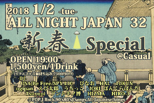 1/2-tue- ALL NIGHT JAPAN 32 ¿·½ÕSP OPEN 19:00 1,500yen/1Drink (¥ê¥¯¥¨¥¹¥È²»¸»»ý¤Á¹þ¤ß¤Ç500±ßOFF) -J-POP,J-Rock,90's80'sJ-songs,All Japanese Songs- -DJ- OSA(Be Free/SPY-LO) ¤Ô¤Ê¤ª HAL¡¡ 10KUN ogipan ¤¨¤ÔÂÀϺ ¤¦¤Á¤Ã¤³ IORI ¤Ü¤ó¤¯¤é¤Ñ¤ó¤À Tsuyopi ¥¢¥ó¥È¥¥ÎÇî HIZMA HIRO-3 Casaul¿·½Õ°ìȯÌܤȤ¤¤¨¤Ð J-SONG ONLY¤Ç¤ªÁ÷¤ê¤¹¤ëALL NIGHT JAPAN ¿·Ç¯³«ºÅ¤È¤¤¤¦¤³¤È¤Ç ¤ªÀµ·î´¶MAX¤Ë¡ÖÌߤĤ¡×¤ä¤ê¤Þ¤¹¡ª Ëèǯ¹±Îã¤Îî¼ò°û¤ßÊüÂê¤â¤â¤Á¤í¤ó¤¢¤ê¤Þ¤¹¤è Îɤ¤°ìǯ¤Ë¤¹¤ë¤¿¤á¤ËCasual¤Ç¤ªÀµ·î¤ò¡Ä Íγڤ⤤¤¤¤±¤É¡¢