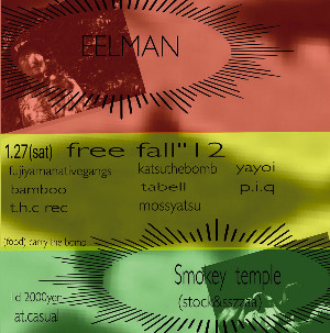 1/27-sat- FREE FALL vol.12 OPEN 22:00 2,000yen/1Drink -GUEST LIVE- EELMAN Smoky temple -LIVE- fujiyamanativgangs bamboo T.H.C rec -DJ- Katsu the bomb tabell mossyatsu yayoi p.i.q -FOOD- Carry the bomb