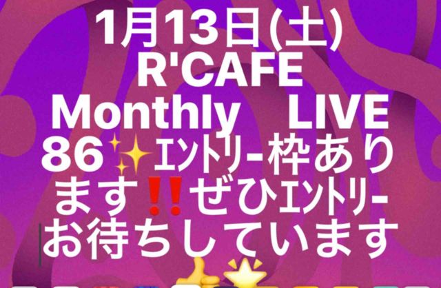 R'CAFE Monthly LIVE 86✨1223日(土曜日)の延期です エントリ-枠があります ぜひエントリ-お待ちしています👍🌟