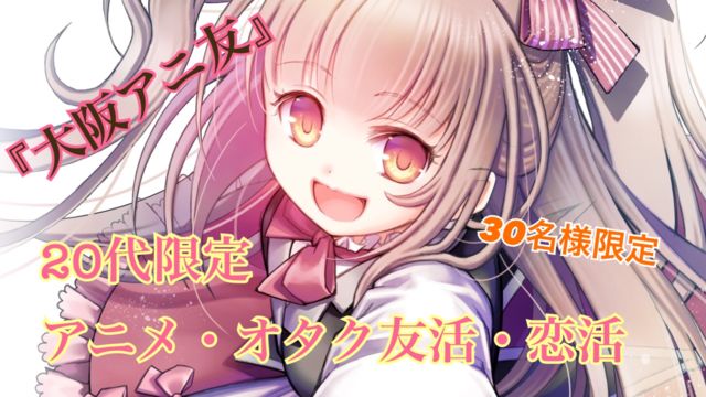 ■大阪のおしゃれなお店貸し切りで30名様限定(男女15名様)で20代限定でアニメ・オタク友活。恋活イベント『大阪アニ友』開催します■ 今回は、なんと30名様募集の中、先に予約していただいた女性の方10名様限定で無料で参加出来ます! イベント内容は、アニメ好きの集まる飲み会メイン(コンパ)の交流会イベントです(一つでも何か好きなアニメ作品がありましたオッケーです) 同じ趣味の方+年齢も近い方が集まるので盛り上がること間違いなし! 今回のオフ会は、ツイッターなどでも募集してるため人数限りがありますので少しでも気に