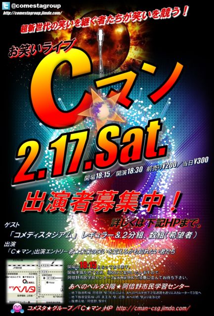 Âè108²ó £Ã¡ú¥Þ¥ó ¡¡¡¡http://cman-csg.jimdo.com/ ¡¡¡¡£±·î£±£³ÆüÅÚÍËÆü ¡¡¡¡³«¾ì18¡§15¡¿³«±é18¡§30 ¡¡¡¡¤¢¤Ù¤Î¥Ù¥ë¥¿£³³¬¡ú°¤ÇÜÌî»Ô̱³Ø½¬¥»¥ó¥¿¡¼ Á°Çä¤ê¥Á¥±¥Ã¥ÈͽÌó ¡¡¡¡http://cman-csg.jimdo.com/ Ëè·î¡¢°¤ÇÜÌî¤Ç³«ºÅ¤µ¤ì¤Æ¤¤¤ë¡Ö¥³¥á¥Ç¥£¥¹¥¿¥¸¥¢¥à¡×¾º³Ê¸¢¤ò¤«¤±¡¢¥é¥ó¥¥ó¥°¥Í¥¿¥Ð¥È¥ë¤¬·«¤ê¹¤²¤é¤ì¤Æ¤¤¤ë¡ª ¤³¤ì¤Þ¤Ç¤Î½Ð±é¼Ô http://csg-performer-data.jimdo.com/ ¾×·â¡¡Ì¤Íè¤Î¾Ð¤¤¤òÊѤ¨¤ë¤«¤âÃΤì¤Ê¤¤¼Ô¤¿¤Á¤¬¥Í¥¿¤ò¶¥¤¦¡ª £Í£Ã ¡¡¥Ý¥¤¥ó¥»¥Á¥¢