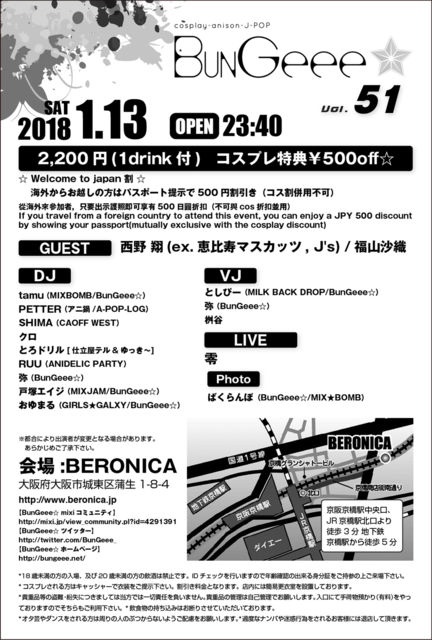 ¥¨¥ì¥¬¥ó¥È¤ÊÊ·°Ïµ¤¤òÅ»¤¦¥¨¥ó¥¿¡¼¥Æ¥¤¥á¥ó¥È¥À¥¤¥Ë¥ó¥°BERONICA ¤½¤ÎBERONICA¤¬°ìÈÕÃæ¥¢¥Ë¥½¥ó¤ÈJ-POP¤ÎÇ®µ¤¤ËÊñ¤Þ¤ì¤ë°ìÌë¡¢BunGeee¡ù 2018ǯºÇ½é¤Î¥²¥¹¥È¤Ï½éÂå·ÃÈæ¼÷¥Þ¥¹¥«¥Ã¥Ä¤è¤êÀ¾ÌîæÆ(J's)¤È ¡ØROBOMASTERS THE ANIMATED SERIES¡Ù¤Î¼çÂê²Î¤ò²Î¤¦Ê¡»³º»¿¥¡ª LIVEACT¤Ë¤ªÆëÀ÷¤ßÂçºå¤Î¥¢¥Ë¥½¥ó¥Ç¥£¡¼¥ÐÎí¡ª ¥«¥ª¥Õ¥¦¥¨¥¹¥È¤«¤é¤ÏDJ SHIMA¤¬BunGeee¡ù½éÅо졪 »ÅΩ²°¥Æ¥ë&¤æ¤Ã¤¡Á¤Î¥æ¥Ë¥Ã¥È¡Ø¤È¤í¥É¥ê¥ë¡Ù¡¢¥¢¥Ë¥Ç¥ê¤«¤éRUU¡ª ¤½¤·¤ÆµþÅԤΥ¢¥Ë¥½¥ó²¦»Ò¤³¤ÈDJPETTER¤¬µ×¤·¤Ö¤ê¤ÎBunGeee¡ù½Ð±é¤È¤â¤ê¤À¤¯¤µ¤ó¢ö ¿·Ç¯¤Î±ã¤Ë¤¼