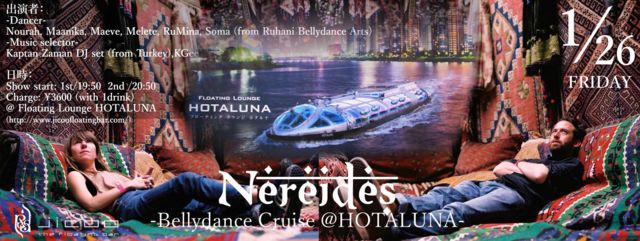 Ëè·îÂè4¶âÍËÆü¤ËJicoo The Floating Bar¤Ç³«ºÅ¤·¤Æ¤¤¤ë¥Ù¥ê¡¼¥À¥ó¥¹¥¯¥ë¡¼¥º "Nereides (¥Í¥ì¥¤¥Ç¥¹)¡É 2018ǯÂè1²óÌܤϲñ¾ì¤òJicoo The Floating Bar¤Î»ÐËåÁ¥"Floating Lounge HOTALUNA¡Ê¥Û¥¿¥ë¥Ê¡Ë"¤Ë°Ü¤·¤Æ¤ÎÆÃÊ̳«ºÅ¡£ ¥È¥ë¥³¤è¤ê¥¹¥Ú¥·¥ã¥ë¥²¥¹¥È¤ò·Þ¤¨¤ªÆÏ¤±¤·¤Þ¤¹¡£ À§Èó²Ú¤ä¤¤¤Ç¤ª±Û¤·¤¯¤À¤µ¤¤¤Þ¤»¡ª ¢£Artist -Bellydance Show- Nourah, Maanika, Maeve, Melete, RuMina, Soma (from Ruhani Bellydance Arts) http://bellydancearts.jp/ -Music selector- Kaptan Zaman DJ set (from Turkey) KGee ¢£Venue Floating Lo