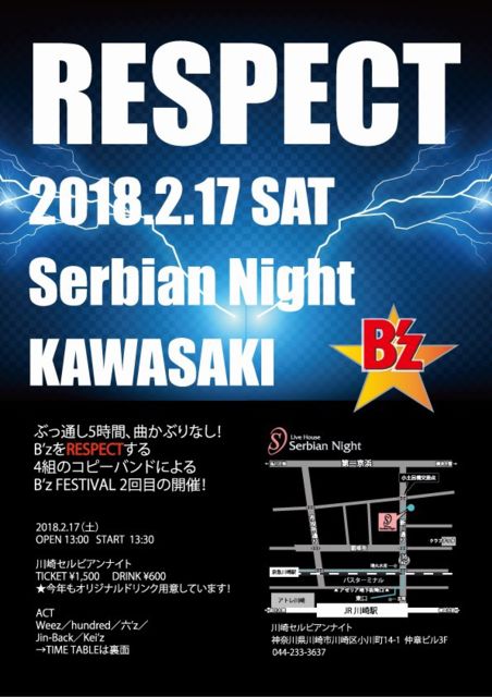 ¡Ú£±£±£³²óÌܡۣ²£°£±£¸Ç¯£²·î£±£·Æü¡ÊÅÚ¡Ë B'z·ëÀ®£³£°¼þǯ¤ÎÆü¤ËÈ÷¤¨¤ë²ñ B'z¤Î¥³¥Ô¡¼¥Ð¥ó¥É£µÁȤˤè¤ëB'zFESTIVAL¤Ë»²²Ã¤·¤Þ¤¹¡ª¡ª ·²ÇϤΰðÍÕ¤µ¤ó¤³¤È¡¢Îè»ÖéË¡ù¤µ¤ó¤â¥Ð¥ó¥É¤ò¥á¥ó¥Ð¡¼¤òÆþ¤ìÂØ¤¨¤¿¿·¥Ð¥ó¥É¤ÇÅо졪 ¿ÀÆàÀî¤ÎLOUD-GYM¤â¹Ô¤ï¤ì¤ë¥¯¥é¥Ö¥Ï¥¦¥¹¤Ç¡¢ Èï¤ê¶Ê¤Ê¤·¤Î¤Ö¤ÃÄ̤·£µ»þ´Ö¡¢£³£°¼þǯ¤ò¤ª½Ë¤¤¤¹¤ë¤ËÁê±þ¤·¤¤¥¤¥Ù¥ó¥È¤Ç¤¹¡ù ½ª±é¸å¤Ë¤Ï¡¢DINOSAUR¥Ä¥¢¡¼¤Î´¶ÁÛ²ñ¤âƱ»þ¤Ë³«¤¤Þ¤¹¡ª ¢ã£±¼¡²ñ¢ä ¡Ú²ñ¾ì¡Û Àîºê¥»¥ë¥Ó¥¢¥ó¥Ê¥¤¥È http://www.serbian-night.tv/ ¡Ú»þ´Ö¡Û £±£³¡§£³£°¡Á£µH ¡Ê£±£³¡§£°£°³«¾ì