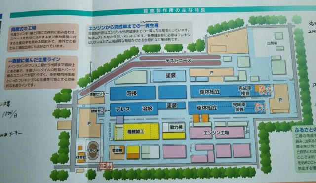 以前から行きたかった車の製造ライン見学・・・何度か皆さんで応募していました。ロコモコさんが今月当選致しました。ロコモコさんに感謝です。 鈴鹿製作所はエンジン〜プレス〜溶接〜塗装〜組立迄の一貫生産です。3時間20分で一台の車が完成するそうです。 本田技研工業(株)鈴鹿製作所 http://kojo-kengaku.com/6116/honda_suzuka/ 見学は 1,パンフレットとビデオで車が生産される工程を説明 2,バスに乗って組立工程案内へ ・自動車製造ライン見学 ・完成車組立工場見学 3,Honda Woods 見学 http://www.honda.co.jp/hondawoods/l
