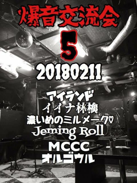 BAND LIVE Çú²»¸òή²ñ 2·î11Æü open17:00 Start 17:30 fee¡ï1500(1dÉÕ¤¡Ë 1 Mccc 17:30¡Á18:15 2 jeming roll 18:15¡Á19:00 3 ¥¤¥¤¥ÊÎÓ¸é 19:00¡Á19:45 4 ¥¢¥¤¥é¥ó¥É 19:45¡Á20:30 5 ¥ª¥ë¥´¥¦¥ë 20:30¡Á21:15 6 Ç»¤¤¤á¤Î¥ß¥ë¥á¡¼¥¯[?] 21:15¡Á22:00