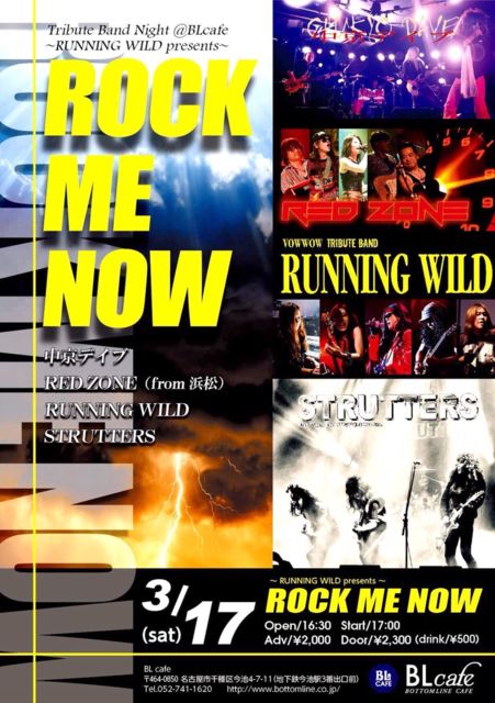 STRUTTERS¥é¥¤¥Ö¤¬·èÄꤤ¤¿¤·¤Þ¤·¤¿ RUNNING WILD¤¬½é¼çºÅ¤¹¤ë¥È¥ê¥Ó¥å¡¼¥È¥Ð¥ó¥É¥¤¥Ù¥ó¥È ¡ÖROCK ME NOW¡× º£Å٤ϥܥȥà¥é¥¤¥ó¤ÎBL cafe¡Ê¥Ó¡¼¥¨¥ë¥«¥Õ¥§) ÂХХ󤵤ó¤âÇ®¤¤¥Ð¥ó¥É¤µ¤ó¤Ð¤«¤ê ¤³¤Î´¨¤µ¤ò¿á¤Èô¤Ð¤½¤¦¡ª¡ª ³§¤µ¤Þ¤Î¤ª±Û¤·¤ò¤ªÂÔ¤Á¤·¤Æ¤¤¤Þ¤¹¡ª ¡ÁRUNNING WILD presents¡Á ¡ÖROCK ME NOW¡× 3·î17Æü¡ÊÅÚ¡Ë OPEN / 16:30¡¡START / 17:00 Á°Çä·ô)¡ï2000¡¡ÅöÆü·ô)¡ï2300 ¡ÊÊÌÅÓÍץɥê¥ó¥¯Âå 500±ß¡Ë ²ñ¾ì / BL cafe¡Ê¥Ó¡¼¥¨¥ë¥«¥Õ¥§¡Ë¢¨¥Ü¥È¥à¥é¥¤¥ó1F ̾¸Å²°»ÔÀé¼ï¶èº£ÃÓ4-7-11¡ÊÃϲ¼Å´º£ÃÓ±Ø3ÈֽиýÁ°¡Ë Tel : 0