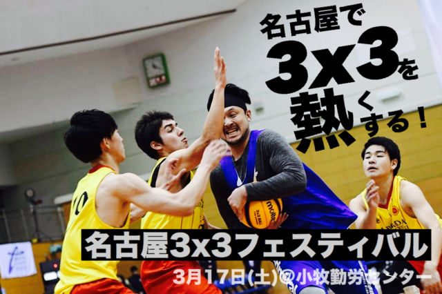 東京オリンピック正式種目3人制バスケ「3x3大会」開催決定! 名古屋3x3フェスティバル 3/17(SAT) 9:00〜18:00 @小牧勤労センター 小牧市大字上末2233-2 大会HP https://nagoya3x3.amebaownd.com 募集カテゴリー ・一般男子 12チーム 6,000円 ・一般女子 6チーム 6,000円 ・U-18男子 6チーム 4,000円 ・U-18女子 6チーム 4,000円 応募フォーム https://ws.formzu.net/fgen/S14955398/ 予選は3チーム2〜4ブロックに分かれて総当り戦(1チーム2試合)。ブロック上位2チームが決勝トーナメントに進出します。 受付 9:00