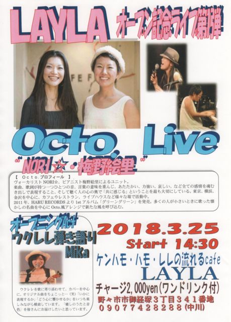 ¸°Èץϡ¼¥â¥Ë¥«¡¦¥Ï¡¼¥â¥Ë¥«¡¦¥¦¥¯¥ì¥ì¤Î¶Ê¤¬Î®¤ì¤ë ¡Ø cafe LAYLA ¡Ù¥ª¡¼¥×¥ó¤·¤Þ¤·¤¿¡£ ÌڤΤ̤¯¤â¤ê¤Î¤¢¤ë¾®¤µ¤Êcafe¤Ç¤¹¡£ cafe LAYLA ¥ª¡¼¥×¥óµÇ°¥é¥¤¥ÖÂè1ÃÆ¡ª¡ª ¡Ø Octo. ¥é¥¤¥Ö ¡Ù £³·î£²£µÆü¡ÊÆü¡Ë £±£´¡§£°£°¥ª¡¼¥×¥ó¡¡£±£´¡§£³£°¥¹¥¿¡¼¥È ¥ß¥å¡¼¥¸¥Ã¥¯¥Á¥ã¡¼¥¸¡¡£²£°£°£°±ß¡Ê¥ï¥ó¥É¥ê¥ó¥¯ÉÕ¡Ë ¥ª¡¼¥×¥Ë¥ó¥°Act ¥¦¥¯¥ì¥ìÃÆ¤¸ì¤ê Mika ¤¼¤Ò¡¢¤ª¤³¤·¤¯¤À¤µ¤¤¡£ cafe LAYLA Ì»Ô»Ô¸æ·ÐÄÍ£³ÃúÌÜ£³£´£±ÈÖÃÏ £°£¹£°£·£·£´£²£¸£²£¸£¸¡ÊÃæÀî¡Ë