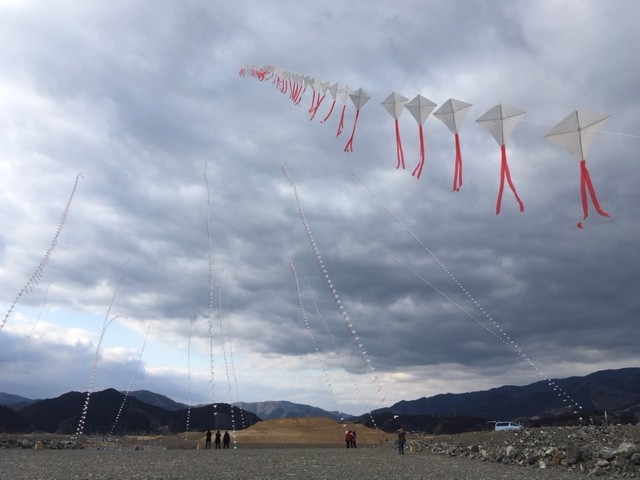 震災で亡くなった方々を忘れたくない。 それだけを念頭に始めた祈願祭も、今年で6度目となります。 陸前高田、大船渡両市での犠牲者数と同数の凧を毎年、空の魂の元へ届けています。 1年に1度だけ、空へと思いを届ける場所。 「気仙天旗祈願祭」 震災を後世に伝えたい。 これからの世代を、子孫を守るためにも、沢山の人達に参加して頂きたく思います。