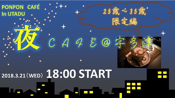 ▼今回のコンセプトについて ・1人参加大歓迎!『プチ街コン形式』で開催! (※お友達同士で参加は3名様までなら可能な限り対応致します) ・同世代(男性25歳〜35歳/女性25歳〜35歳)の男女を集めた形式で開催! (※同世代だから話題も合いやすい!) ・『美味しいスイーツデザート+ソフトドリンク制』で開催! ■当日のタイムスケジュール 17:30〜17:50 受付店舗での受付 (※時間に余裕をもってお越し下さい) ↓ 18:00〜 イベントスタート (※一斉に乾杯を行います) ↓ 18:30〜 席替え等 (