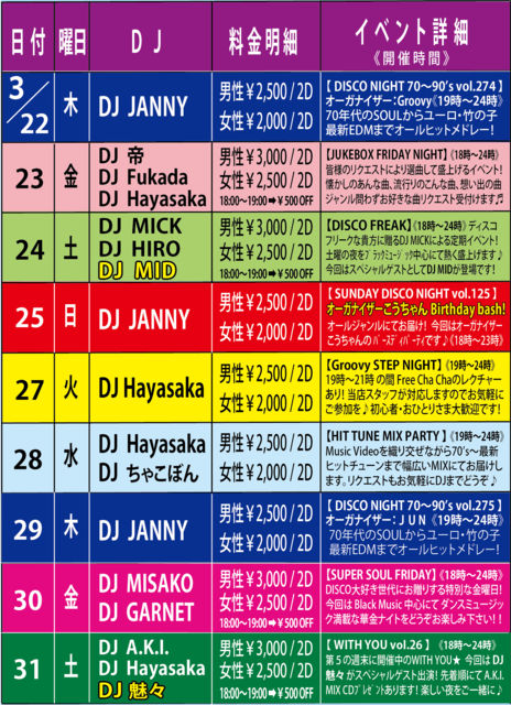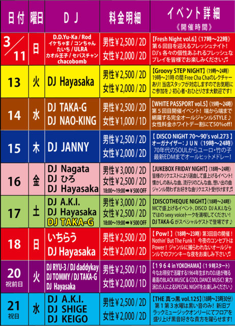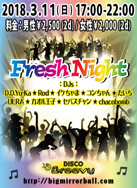 ³«ºÅÂè6²óÌܤò·Þ¤¨¤Þ¤¹¥Õ¥ì¥Ã¥·¥å¥Ê¥¤¥È♬ ³Æ¡¹DJ's¤Î¿·Á¯¤Ê¥×¥ì¥¤¤ò¤É¤¦¤¾¤ª³Ú¤·¤ß²¼¤µ¤¤¡£ ¡ÚDJ's¡Û D.D.Yu-Ka / Rod / ¥¤¥±¤Á¤ã¤Þ / ¥³¥ó¤Á¤ã¤ó / ¤¿¤¤¤Á / ULRA / ¥«¥ª¥ë²¦»Ò / ¥»¥Ð¥¹¥Á¥ã¥ó / chacobomb ¡Ú²»³Ú¡Û ¥ª¡¼¥ë¥¸¥ã¥ó¥ë¡¦¥ª¡¼¥ë¥ß¥Ã¥¯¥¹ ¡Ú³«ºÅ»þ´Ö¡Û 17:00¡Á22:00 ¡ÚÎÁ¶â¡Û ÃËÀ¡§¡ï2,500 / 2Drinks ½÷À¡§¡ï2,000 / 2Drinks