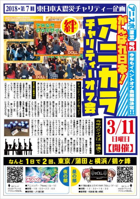 DOLL¶¨ÎϤΤâ¤Èº£Ç¯¤â¤ä¤ê¤Þ¤¹¢ö ÅìÆüËÜÂç¿ÌºÒ/·§ËÜÃϿ̡¦Éü¶½±þ±ç´ë²è ¡Ø2018¡¦Â裷²ó ¤¬¤ó¤Ð¤ìÆüËÜ¡ª ¥¢¥Ë¥«¥é¡¦¥Á¥ã¥ê¥Æ¥£¡¼¥ª¥Õ²ñ¡Ù ¡¡¡ùPRư²è ¡¡https://www.youtube.com/watch?v=HkFsaoO94Xo&feature=youtu.be ¡ú³«ºÅÆü¤Ï£³·î£±£±Æü¡ÊÆü¡Ë º£Ç¯¤â¡¢Ãë¤ÈÌë¤Î£²Éô¹½À®¤È¤Ê¤ê¤Þ¤¹¡£ ÆâÍÆ¤Ï¡¢³§¤Ç¥¢¥Ë¥½¥ó¤ò²Î¤Ã¤Æ³Ú¤·¤â¤¦¤È¤¤¤¦¥ª¥Õ²ñ¤Ç¤¹¡£ ¥¯¥¤¥ºÂç²ñ¤â¤¢¤ê¤Þ¤¹(^_^)/ ¡úÃë¤ÎÉô¤Ï²£ÉÍ¡§Äá¥öÊö¡ÖDOLL¡× ¡¡http://mixi.jp/view_event.pl?comm_id=1347&id=85041515 ¡úÌë¤ÎÉô¤ÏÅìµþ¡§³÷ÅÄ¡ÖRoots¡× ¡¡http://mixi.jp/vi