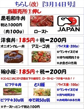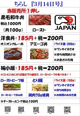 ★12日(月)13日(火)は、休業日ですm(_ _)m ◎最新ちらし《3月14日号》です。。