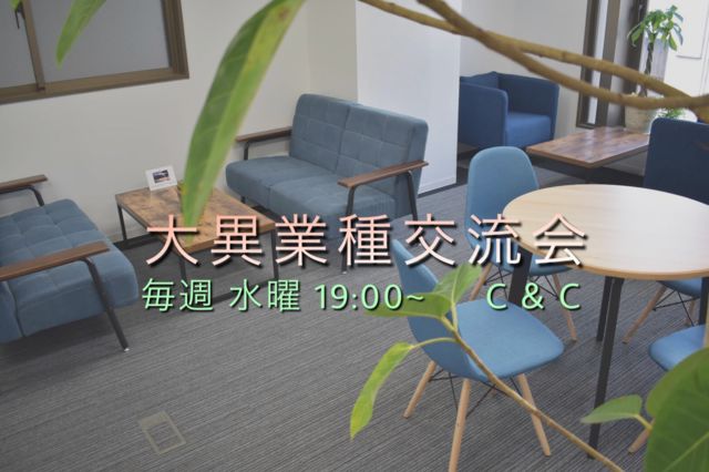 こんにちは! C&Cサロンです♪ 大好評企画 「仲良くなることから始めよう!異業種交流会」 の大交流会バージョン!! 『輪が広がりすぎて困っちゃう!?大異業種交流会』 を開催いたします! この大異業種交流会もただの名刺交換で終わらないよう、仲良くなり次に繋がることを目的とした会です♪ いつものようにみなさんのお仕事のきっかけやこれからどうしていきたいかなどを話し合って頂きたいところですが、この会では人数が多いので仲良くなることを心掛けて頂ければOKです♪ 異業種交流会は堅苦しそうで参加